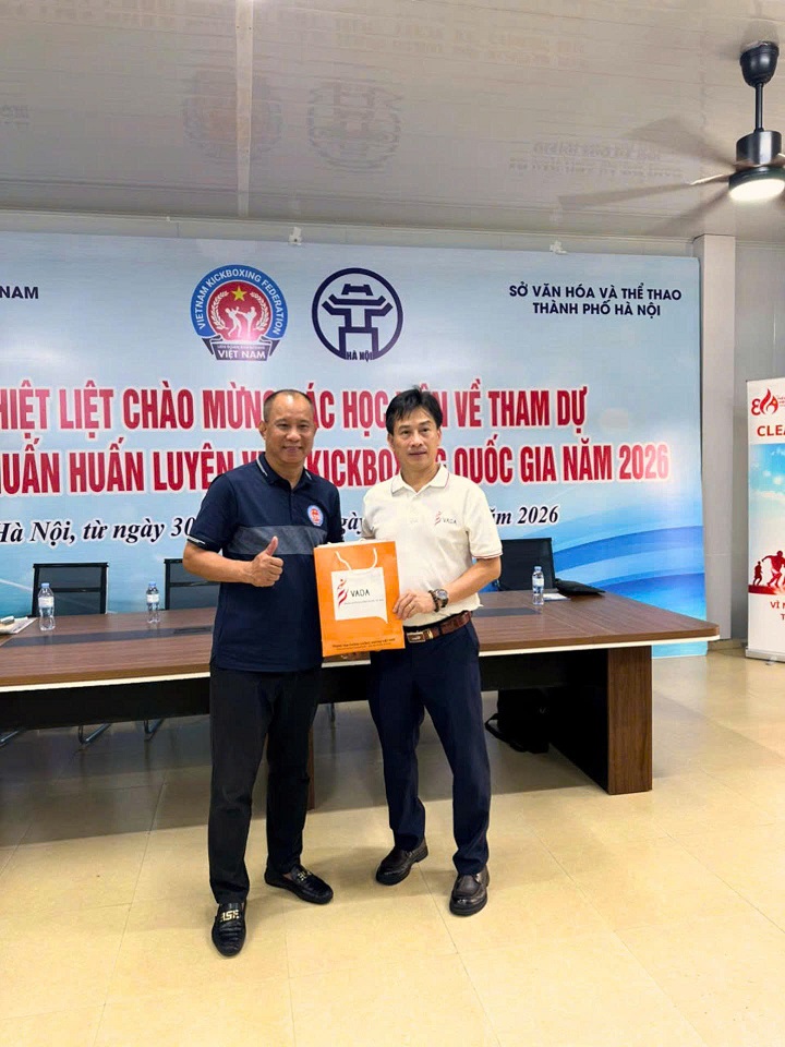 Ngày 02/4/2026, Trung tâm Phòng chống doping Việt Nam (VADA) đã phối hợp cùng Liên đoàn Kickboxing Việt Nam tổ chức lớp tập huấn phổ biến kiến thức phòng, chống doping trong chương trình tập huấn huấn luyện viên Kickboxing quốc gia năm 2026 với sự tham dự của Lãnh đạo Liên đoàn cùng hơn 40 huấn luyện viên Kickboxing.